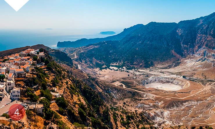Остров архипелага Додеканнес, Нисирос, похож на другие греческие острова. Правда, из-за скал здесь практически нет пригодных для купания пляжей. Зато есть древний акрополь, крепость рыцарей-иоаннитов и храм Успения Божьей матери с мироточащей иконой. Но самое интересное - в центре острова находится спящий вулкан, в кратер которого можно спуститься, чтобы своими глазами увидеть разворачивающийся здесь инопланетный пейзаж.