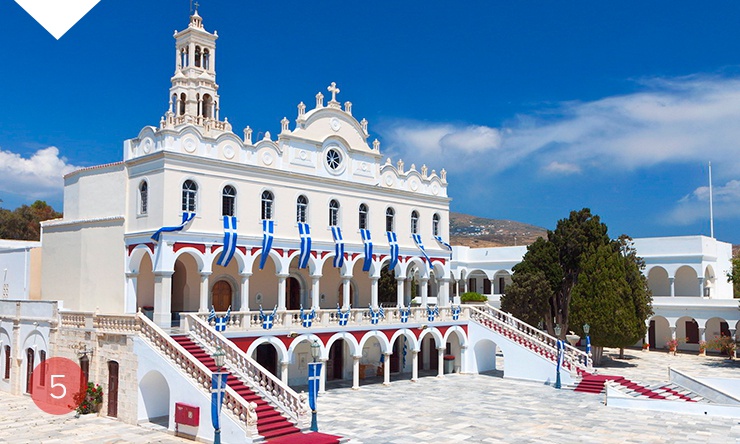 Паломники знают мраморную церковь Богородицы с чудотворной иконой Благовещения на острове Тинос. В августе на праздник успения здесь проводятся грандиозные церковные шествия, ярмарки и карнавалы. Но мраморная на Тиносе не только церковь. Улицы в деревушках выложены мраморными плитами, а каждый второй житель острова мраморщик или скульптор. Все потому, что на Тиносе работают мраморные каменоломни. А в деревне Пиргос есть даже небольшой музей мрамора.