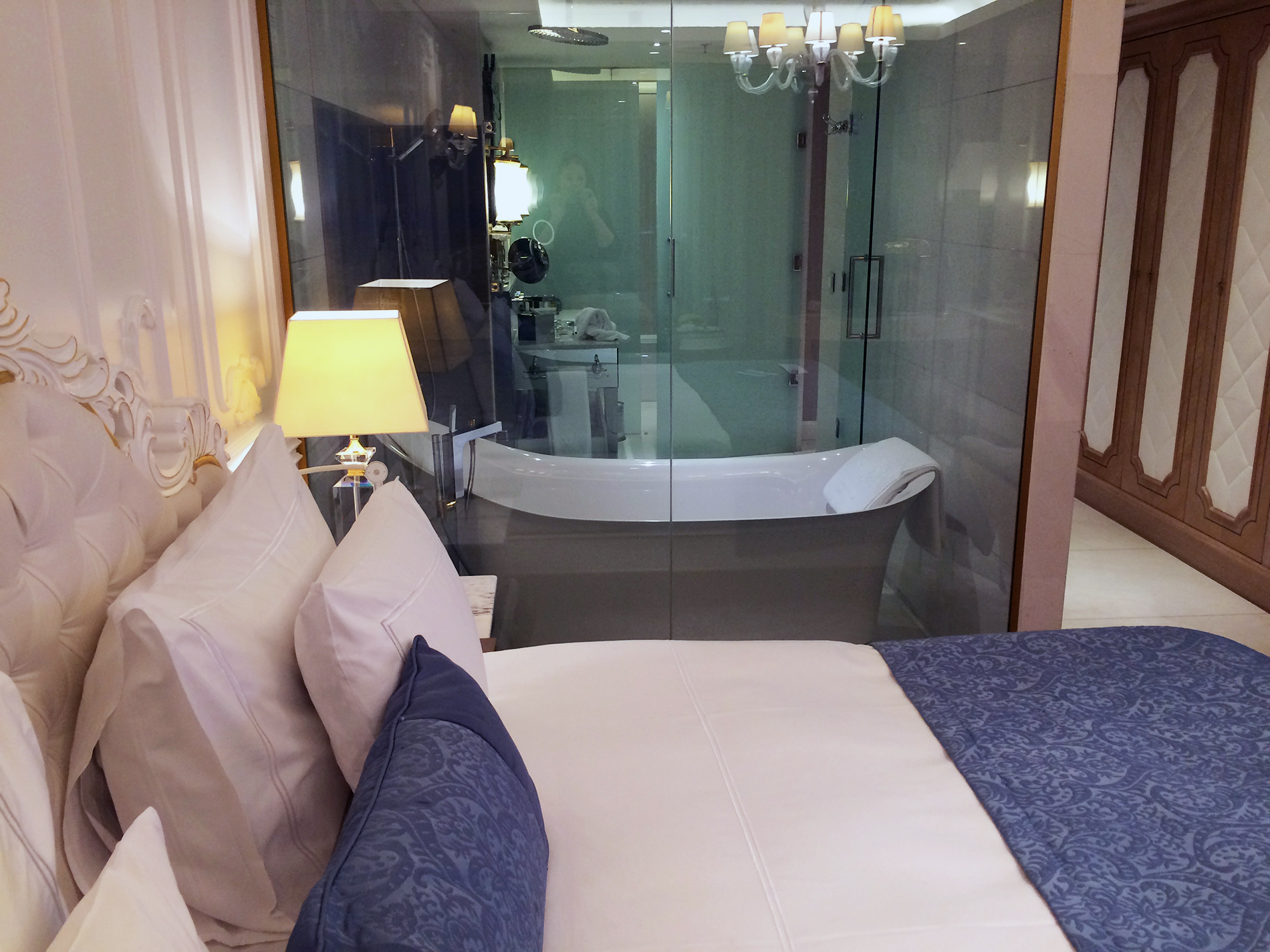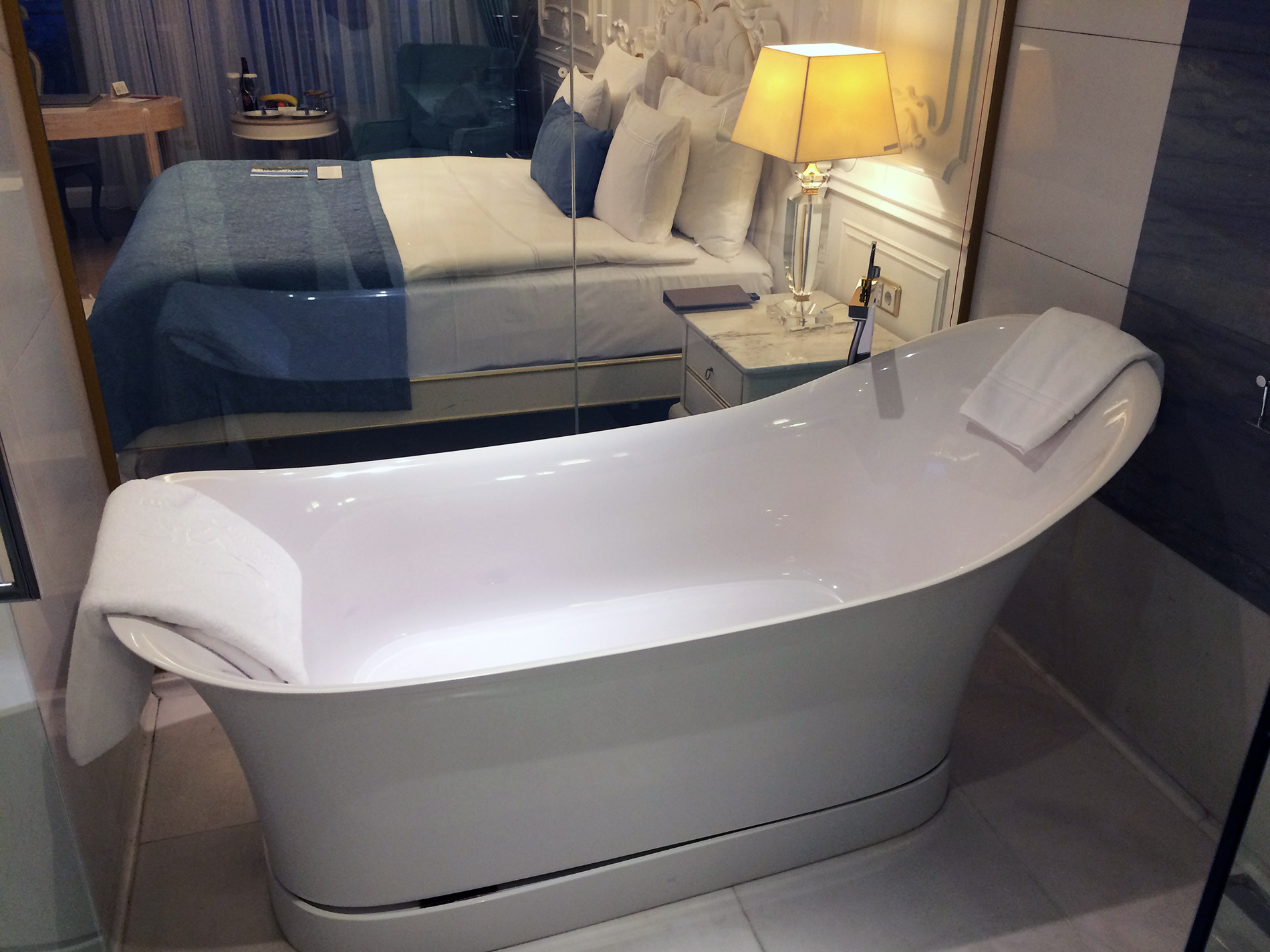 Ванная комната со смарт-стеклом – одна из изюминок номера. Можно принимать ванну, наслаждаясь видом на Босфор.