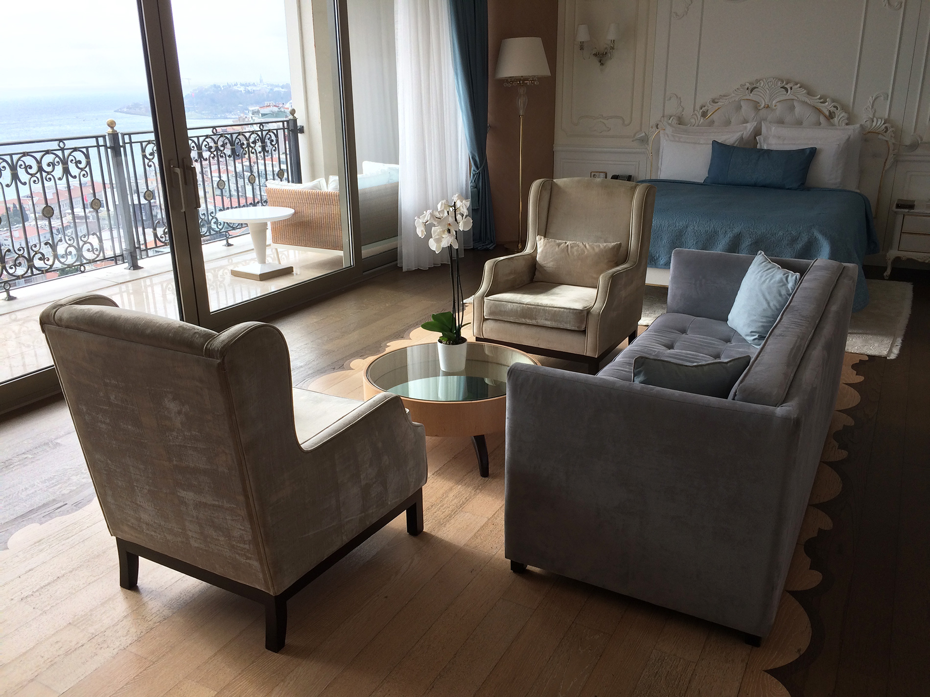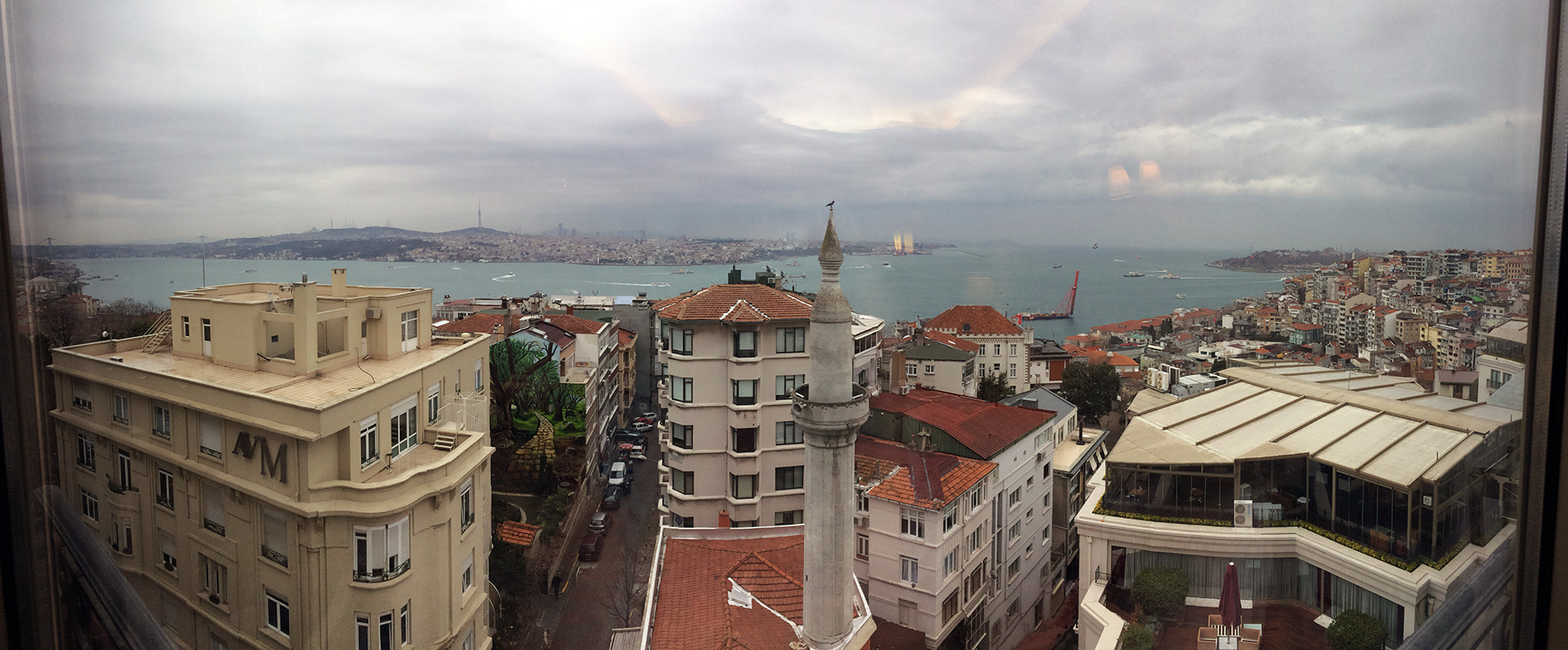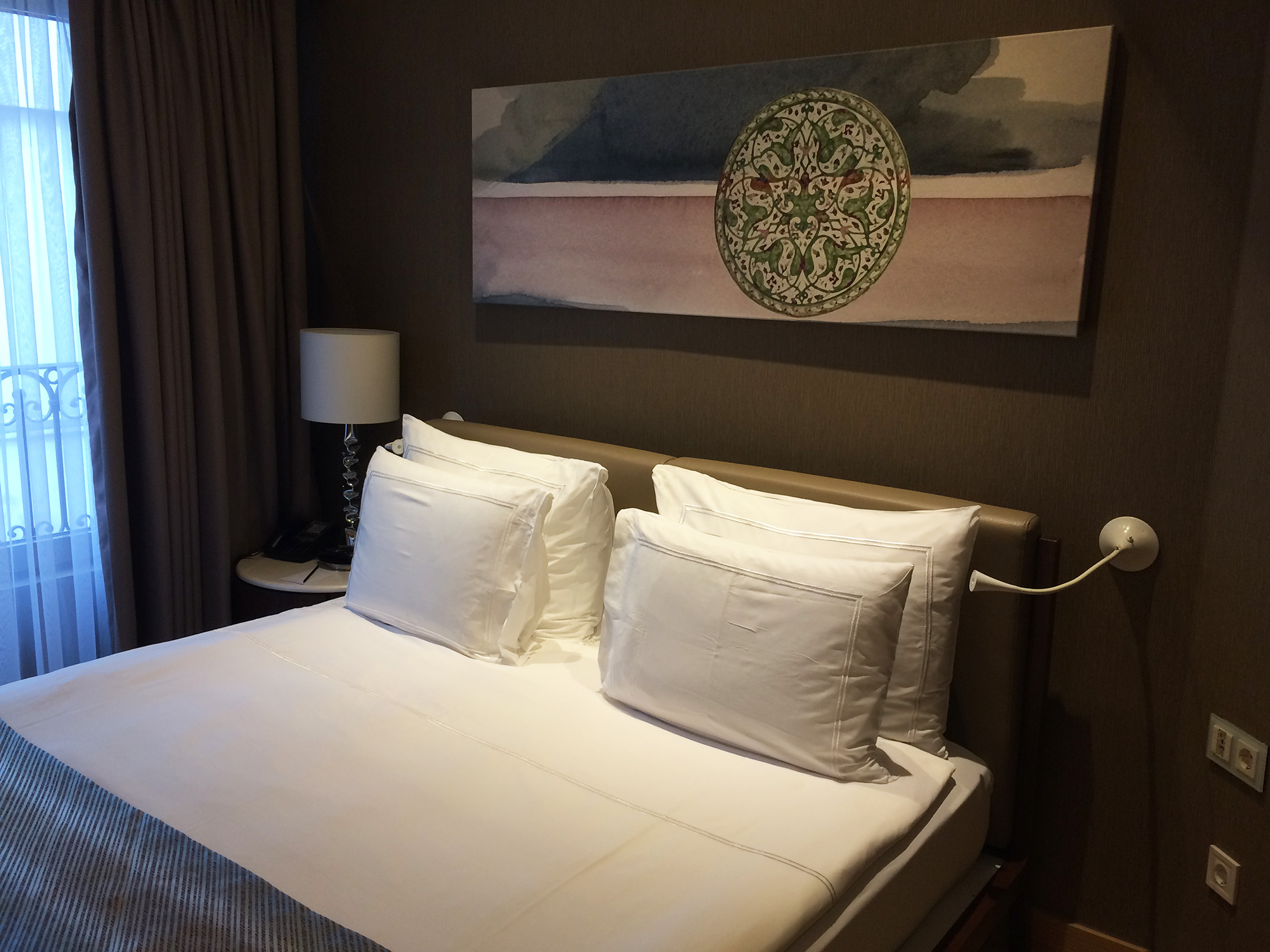 Панорама, открывающаяся из номеров с видом на Босфор, охватывает большую часть города, от Босфорского моста до исторического полуострова со Святой Софией и Голубой мечетью. Прямо по курсу – Девичья Башня, она же изображена на электронных ключах отеля. Номер сможет запросто конкурировать с лучшими смотровыми площадками города. Конечно, масштаб и красоту фото не передаёт. Но поверьте, Босфор будет у вас как на ладони. Внимательные читатели наверняка заметили минарет: песни муэдзинов над проливом добавляют колорита и совсем не мешают отдыху (окна в номере отличаются хорошей шумоизоляцией).