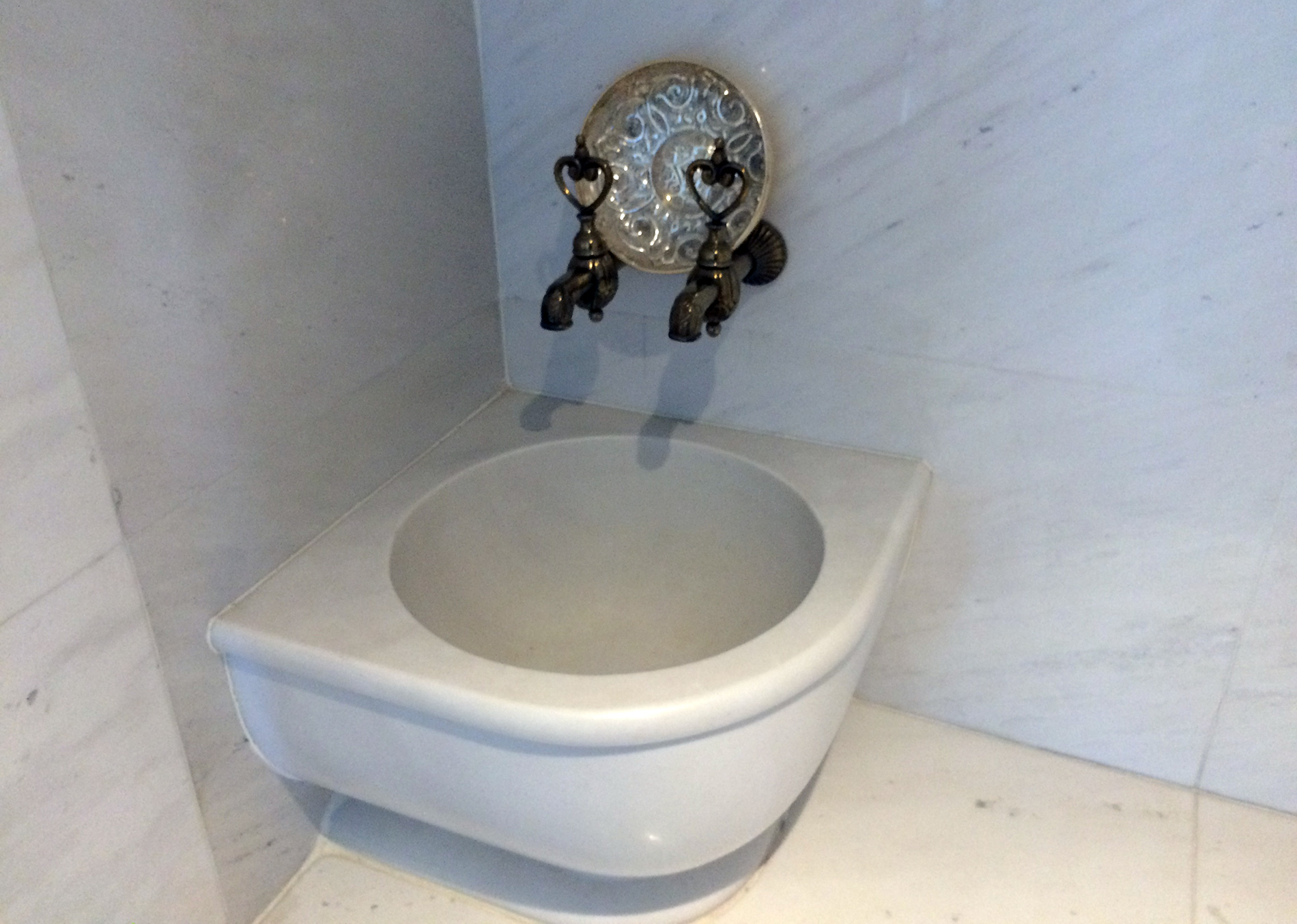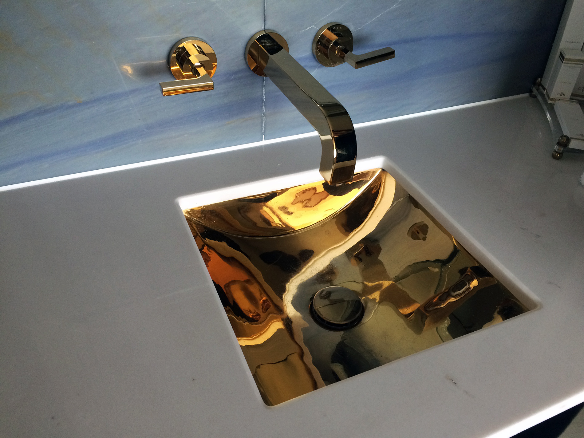 .. и даже покрытые настоящим золотом раковина и смесители.