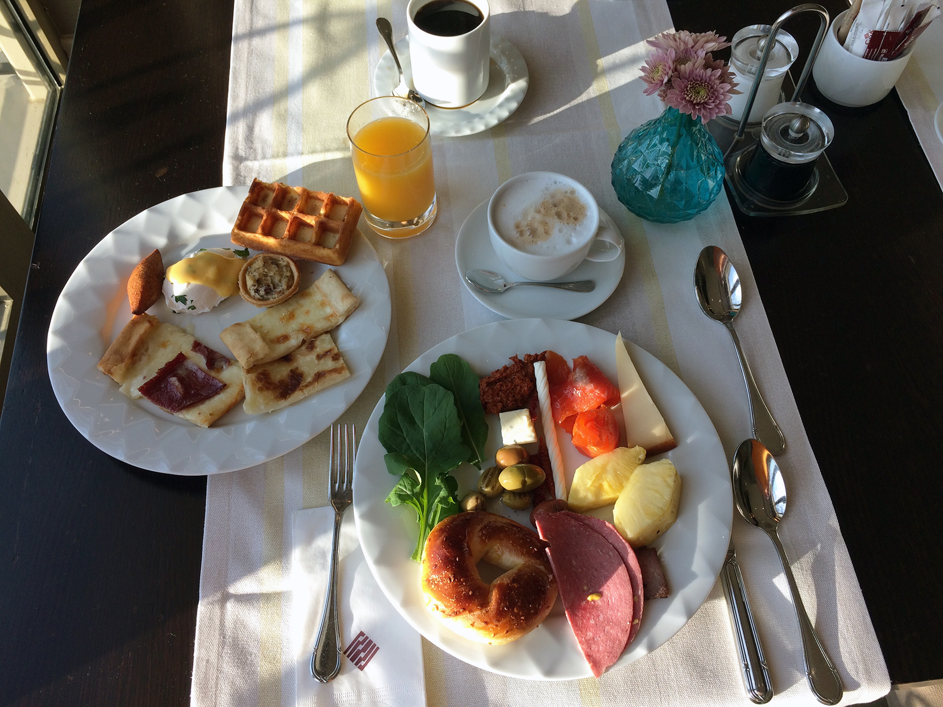 Соки, фрукты, овощи и зелень, традиционная выпечка, сыры и разнообразные закуски, множество горячих блюд, есть даже суп – выбор огромный, и каждый день можно пробовать новое.