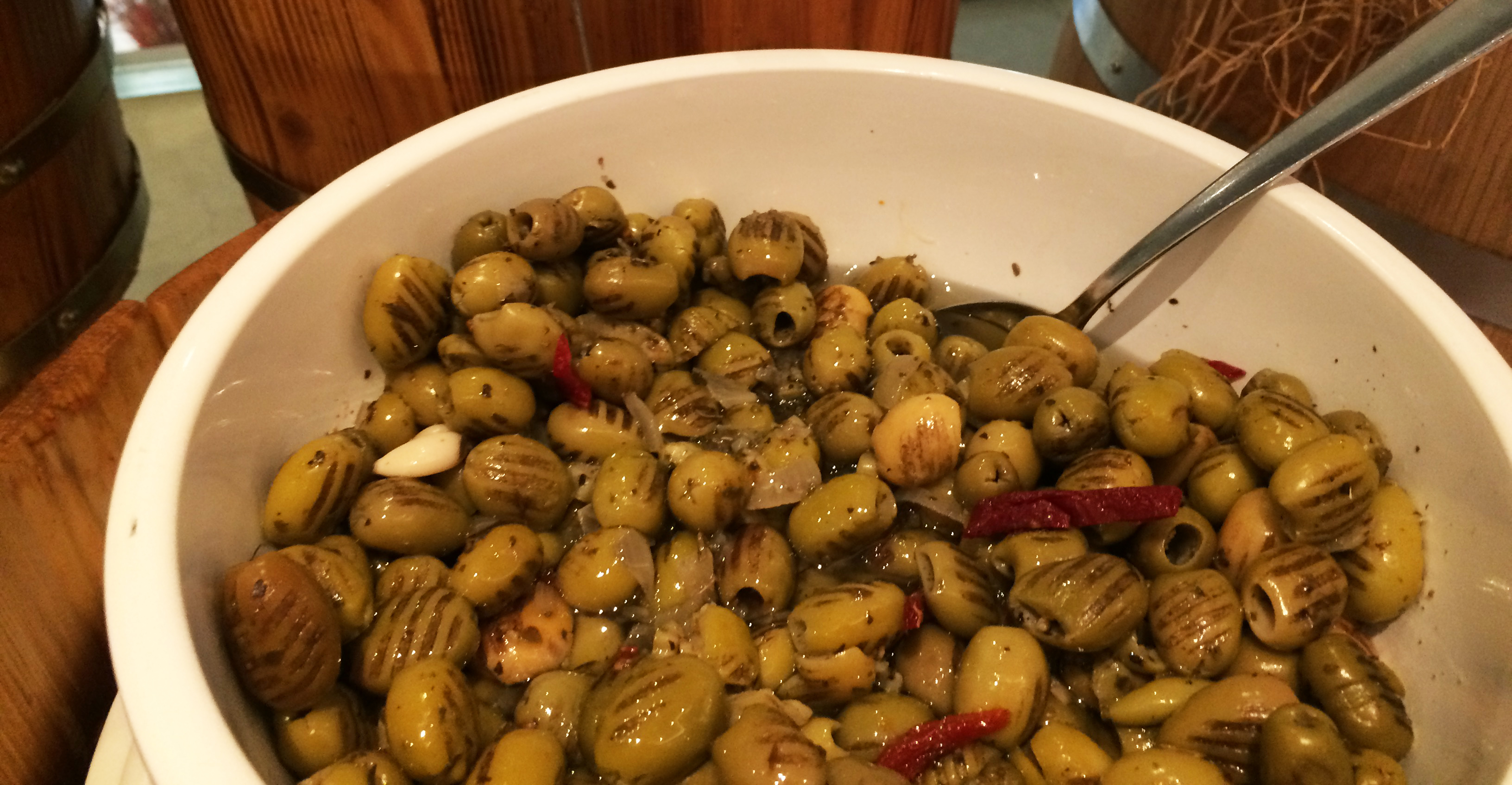 Непременно попробуйте оливки, обжаренные на гриле, - это очень вкусно!