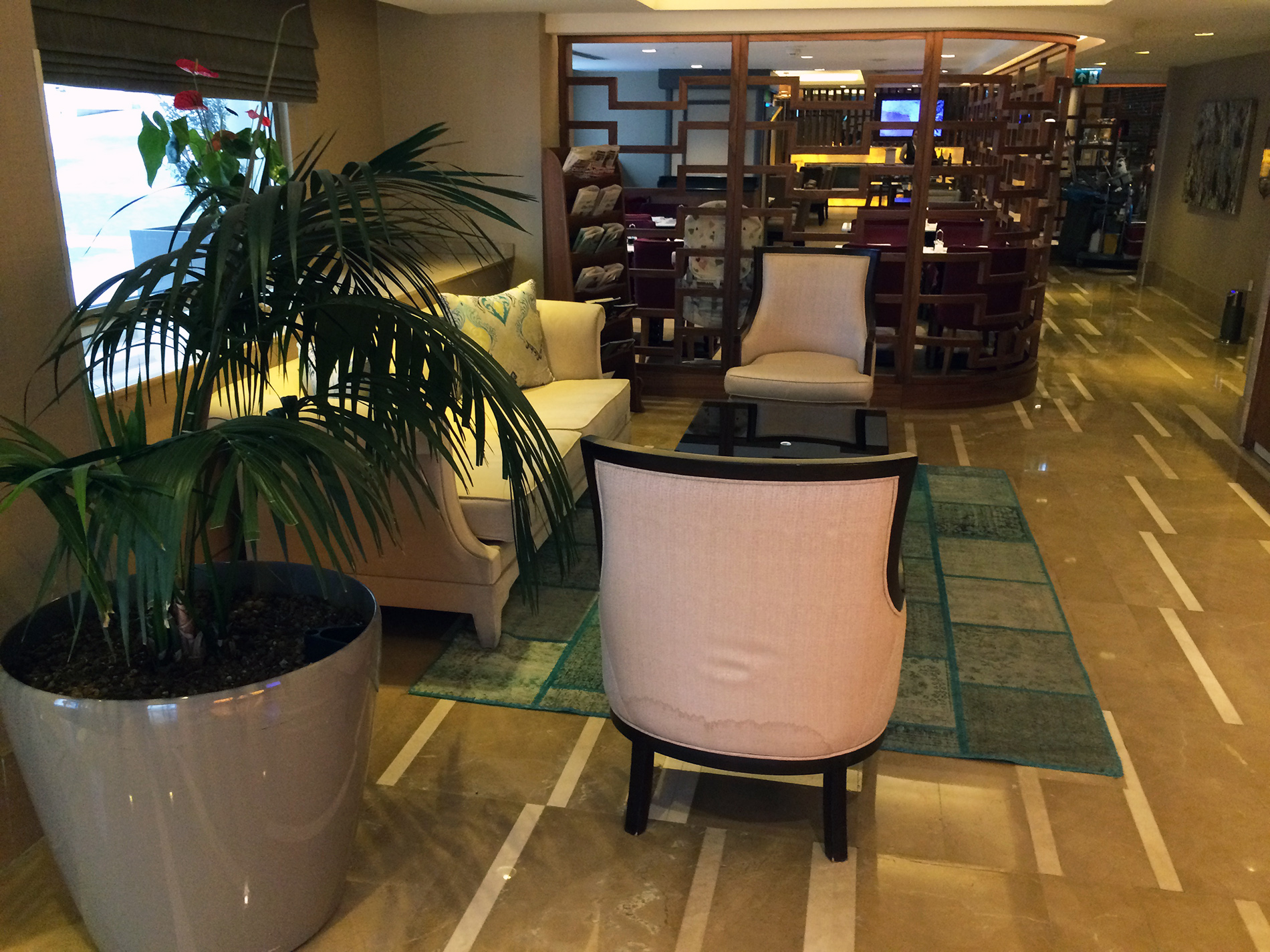 Большое внимание здесь уделяется безопасности: на входе стоит металлодетектор, багаж сканируется на ленте. Просторный и светлый холл украшает внушительная цветочная композиция. После того как на ресепшн вас зарегистрируют и выдадут ключи, сотрудник службы Guest Relations (в команде есть русскоговорящий сотрудник) покажет номер и по дороге расскажет, где проходит завтрак, как работает спа-центр, и ответит на все вопросы.