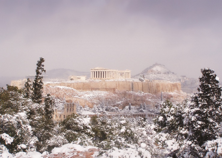 Хочется отметить, что момент пойман действительно редкий: нечасто увидишь Акрополь в снегу. Прекрасны и «мраморные» оттенки фотографии, соответствующие духу Древней Греции. И, конечно, этот кадр доказывает: в Грецию можно (и нужно!) ехать не только летом, она прекрасна в любое время года.