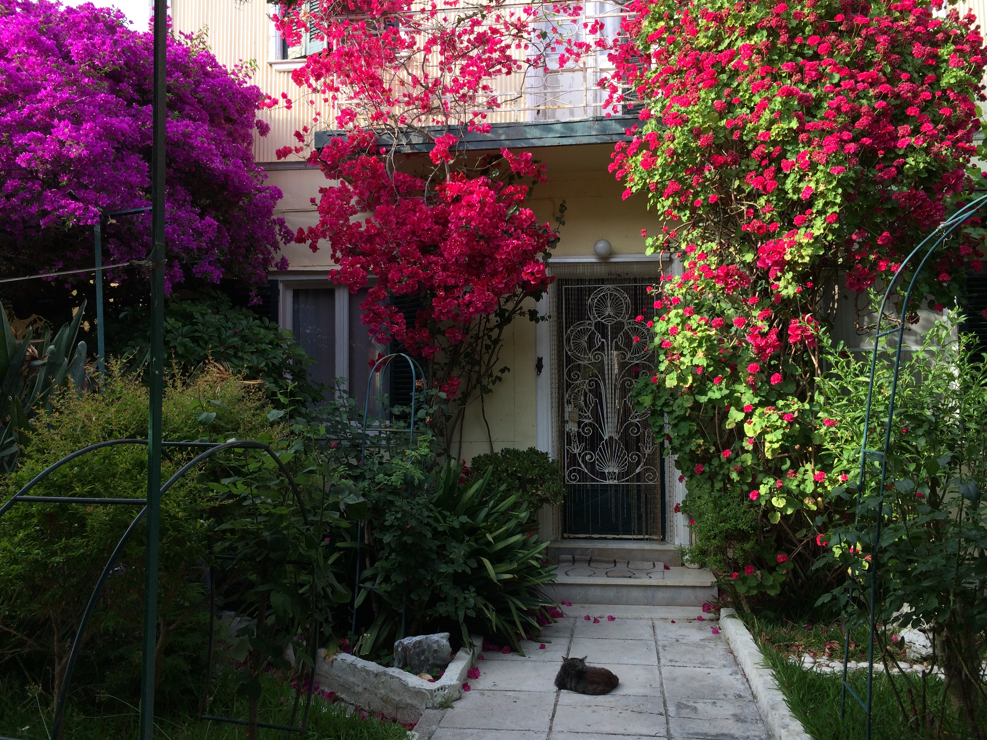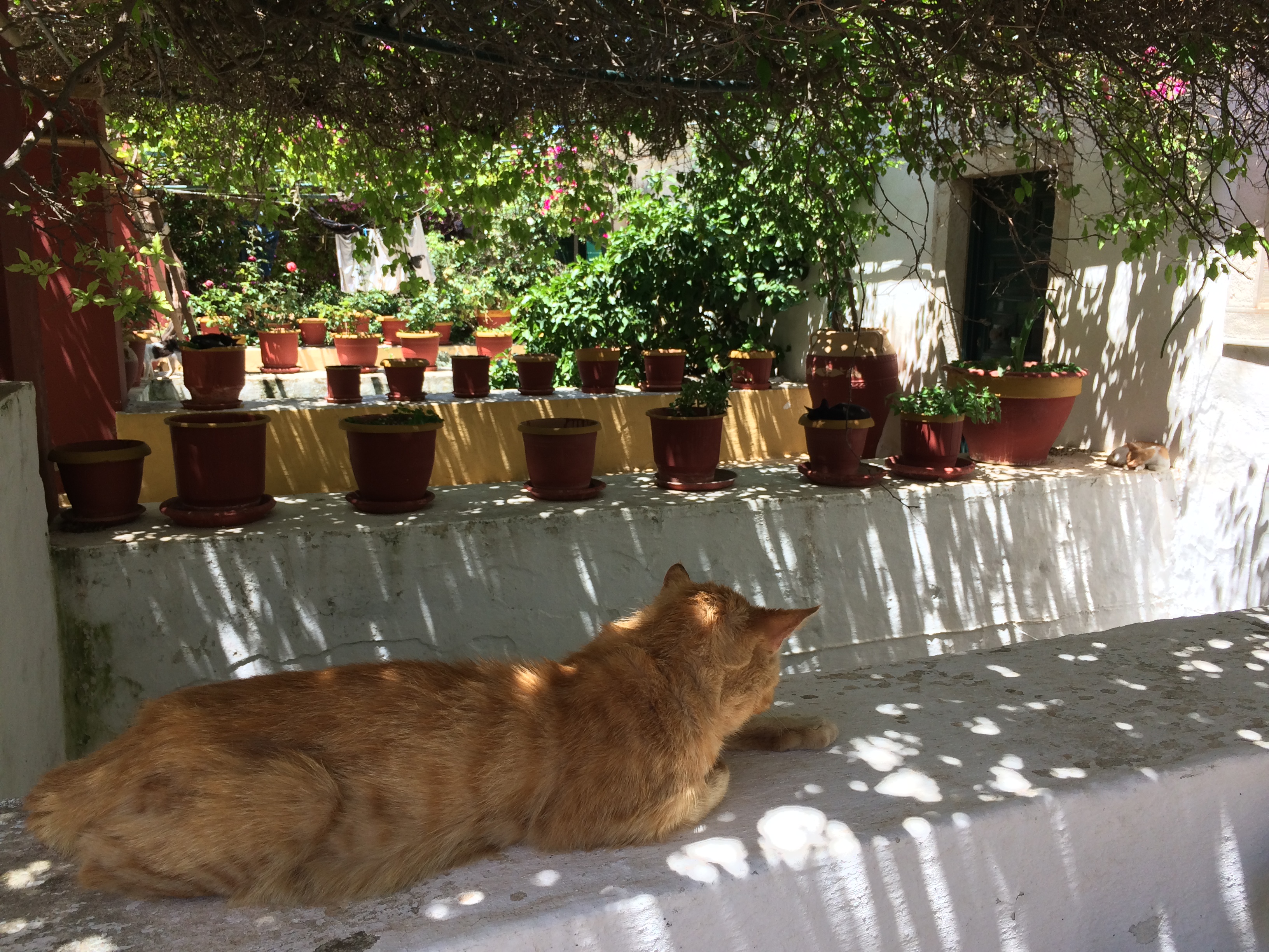 Идеальное место для кошачьей сиесты — цветущий садик в одном из дворов на острове Лефкада.