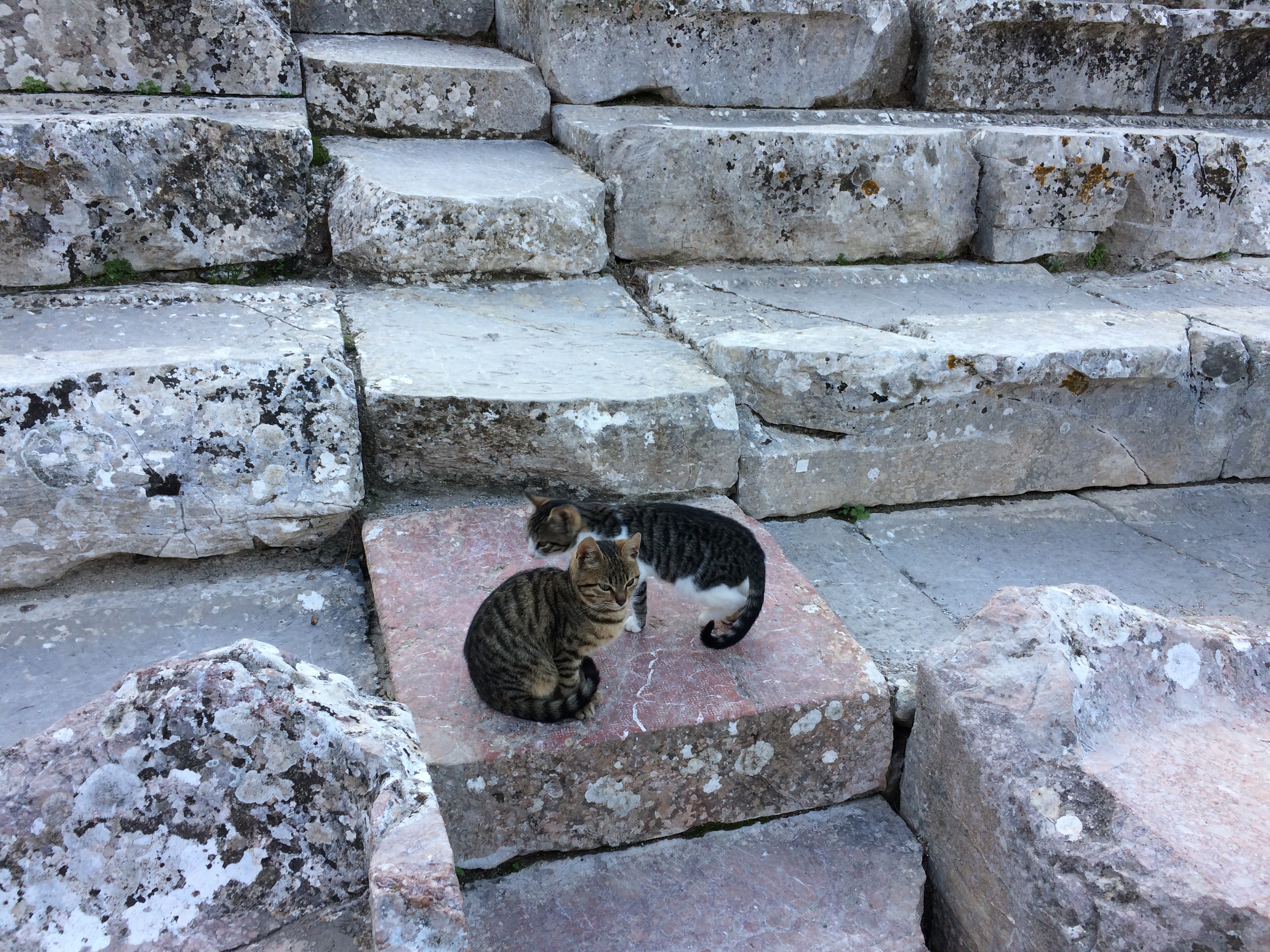 В античном театре Эпидавра пушистые зрители могут оценить уникальную акустику: даже звон упавшей внизу монеты слышен на верхних рядах.