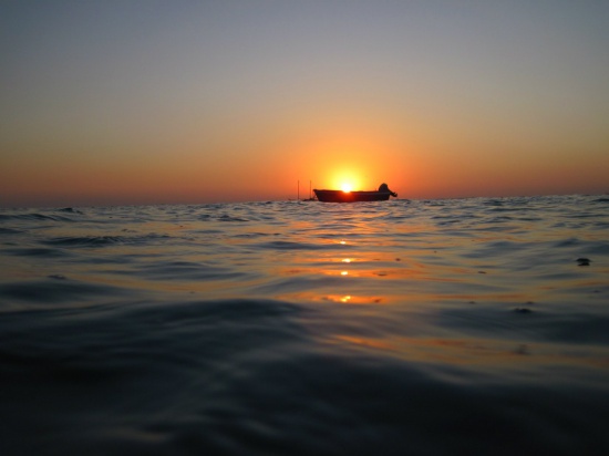 Закатное солнце в ладони – это уже не оригинально. Другое дело, когда солнце в лодке! Этот снимок Виктора Харина украшает еще и то, что снят он почти с уровня воды: кажется, будто это ты плывешь по морю и наблюдаешь все своими глазами.