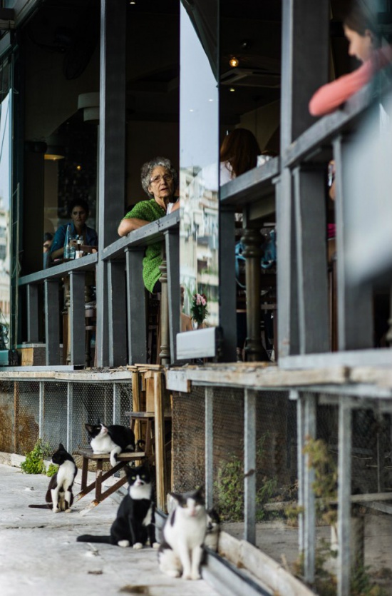 И на десерт – фото с котиками. Грецию без кошек представить невозможно, и на наших конкурсных работах их было предостаточно. Этот кадр, на наш взгляд, – один из самых запоминающихся и забавных. Его можно долго разглядывать – кошачью «мафию», отражения в зеркальных поверхностях... А еще можно заметить, что на этом фото два ресторана – один из них кошачий, и между, прочим, дресс-код у них строгий!
