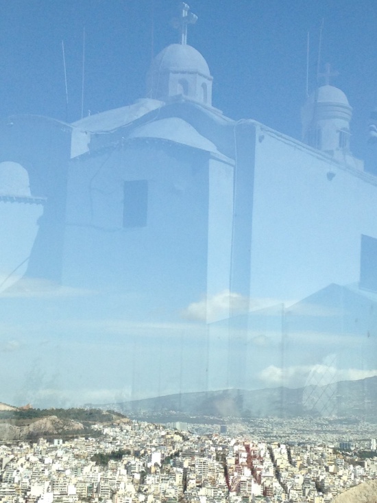 Афины, в прекрасный солнечный день на холме Ликавиттос отражается церковь Св. Георгия. Фото: Елена Байдакова.
