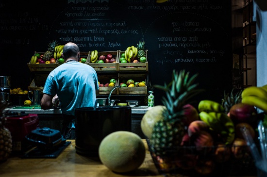 Мало где можно встретить такое же обилие фрешей, как в Греции. Всегда в наличии несколько десятков миксов на любой вкус. Они бодрят лучше, чем кофе, и удаляют жажду лучше пива. На этой фотографии - одна из таких лавок. Афины, Монастираки. Фото: Андрей Новиков.