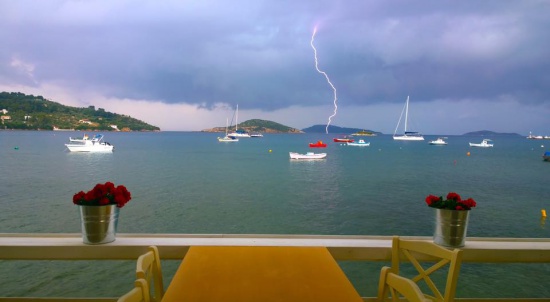 Пусть и сделанный обычной камерой, зато удачно пойманный кадр – молния у островов Северных Спорад.