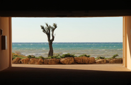 Красота – в простоте: море, линия горизонта, дерево, оконная рама, грубо отесанные камни – ничего необычного. Но этот, казалось бы, незамысловатый пейзаж выделяется из сотен других кадров.