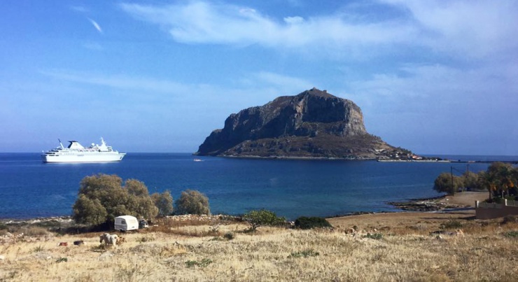 Город-крепость Монемвасия – одна из самых известных достопримечательностей Пелопоннеса. Название места происходит от двух греческих слов – mone и emvasia: «единственный вход», «узкая дорога». Средневековый замок расположен на острове-скале, соединенном с материком каменным мостом.