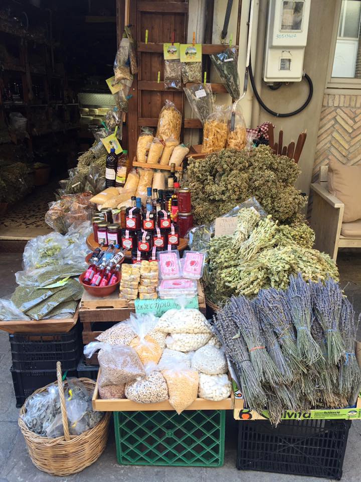 Лавочка с полезными и вкусными сувенирами в Калаврите.