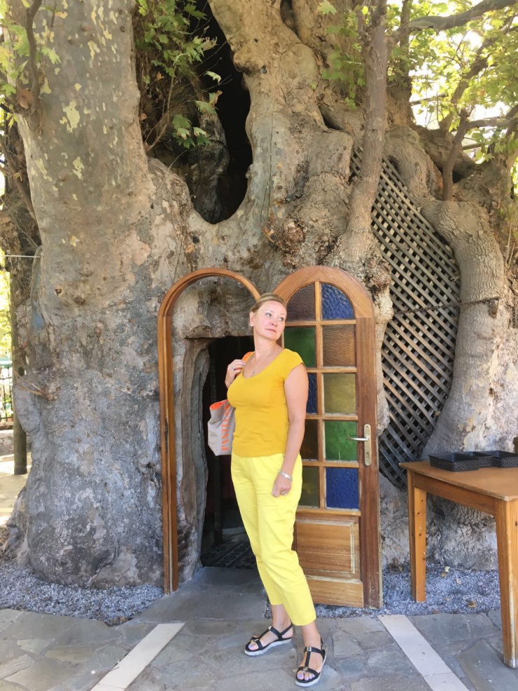 День второй: приключения начинаются в деревне Платаниотисса, знаменитой храмом, расопложенным внутри древнего платана! На фото - Наталья Шоркова, основатель компании «Пантеон».