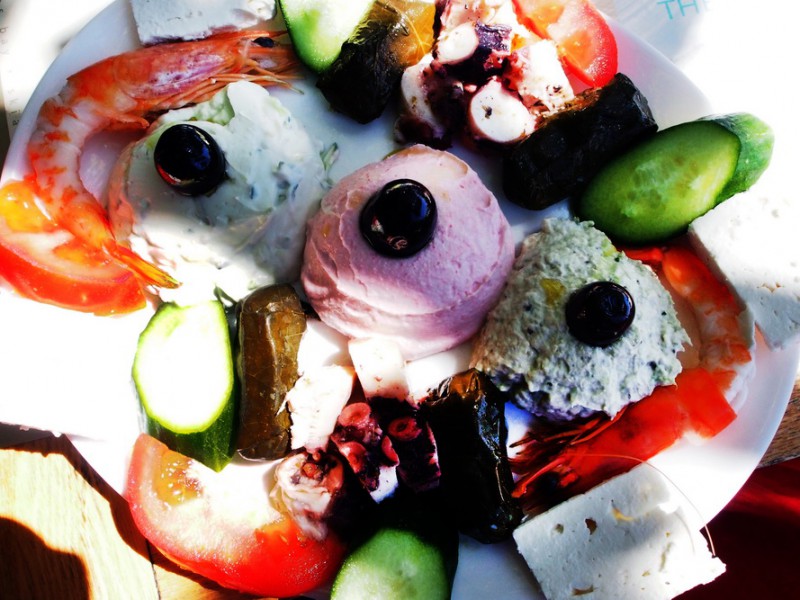 Теперь напишу несколько слов о новом (для русского туриста) острове Скиатос, для англичан, итальянцев, греков и всех остальных он конечно хорошо известен и любим. Что касается отельной базы, она рассчитана на любую категорию туристов и любой отдых — от эконом до лакшери. Также можно выбрать место на острове как для спокойного «тюленьего» отдыха так и активного молодежного. Но объединяет все эти места качественный европейский сервис, шикарные песчаные пляжи, сосновый воздух, радушие греков и конечно греческая кухня, заметьте именно греческая, а не та, что рассчитана на туриста, как это часто бывает в уже изведанных уголках не только Греции. Цены достаточно приемлемые, хороший ужин с вином и морепродуктами 15-20 евро, а пообедать можно за 7-10 евро. Качество греческой кухни выше всяких похвал, кто бывал, тот знает. Тут тебе и сыры, которые греки жарят, запекают с кунжутом, медом и т. д. Морепродукты от осьминогов до разных сортов рыб и все это не замороженное, а свежее слегка охлажденное. Готовят они на местном оливковом масле…, много можно об этом писать, но лучше один раз съездить и попробовать. Рекомендую!