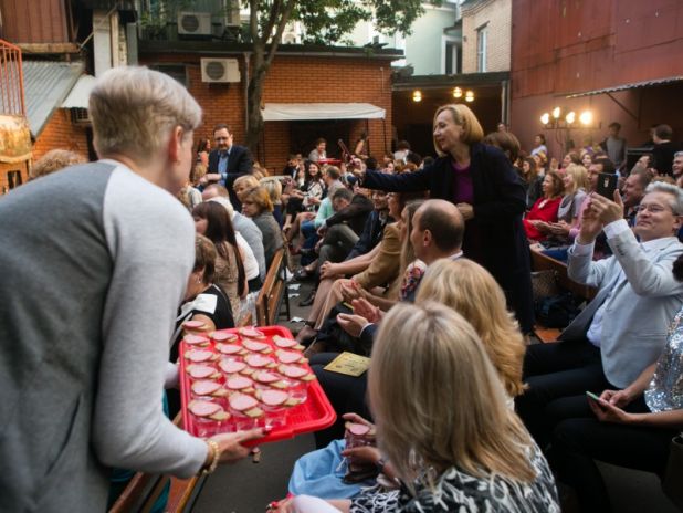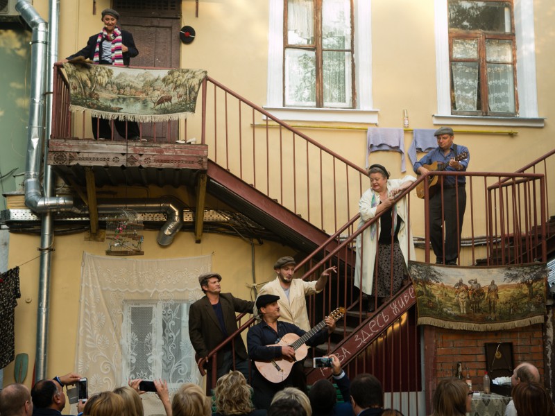 Под открытым небом для всех гостей «Пантеона» прошел закрытый показ культового спектакля «Песни нашего двора». Артисты театра сделали все возможное, чтобы этот вечер запомнился всем: зрители то и дело становились участниками представления. Смех, как известно, объединяет, потому атмосфера во дворе быстро стала по-настоящему дружеской.