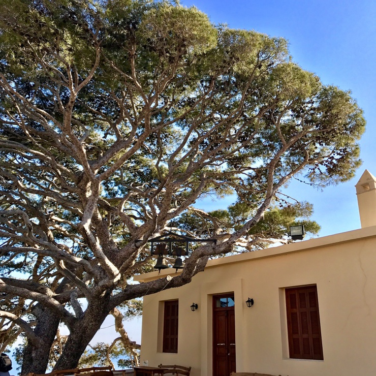 Монастырь в Превели: в раскидистых сосновых ветвях запутались солнечные лучи. Смотрите, как красиво!