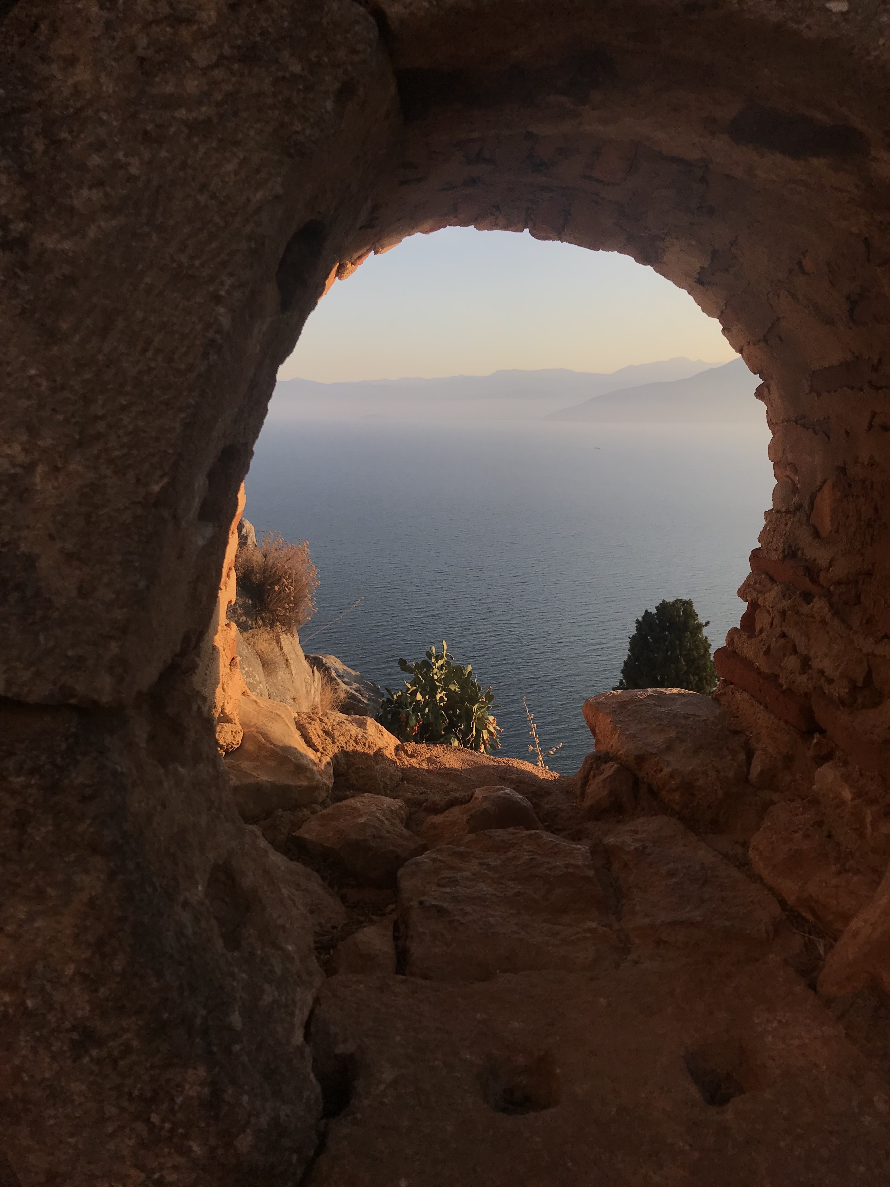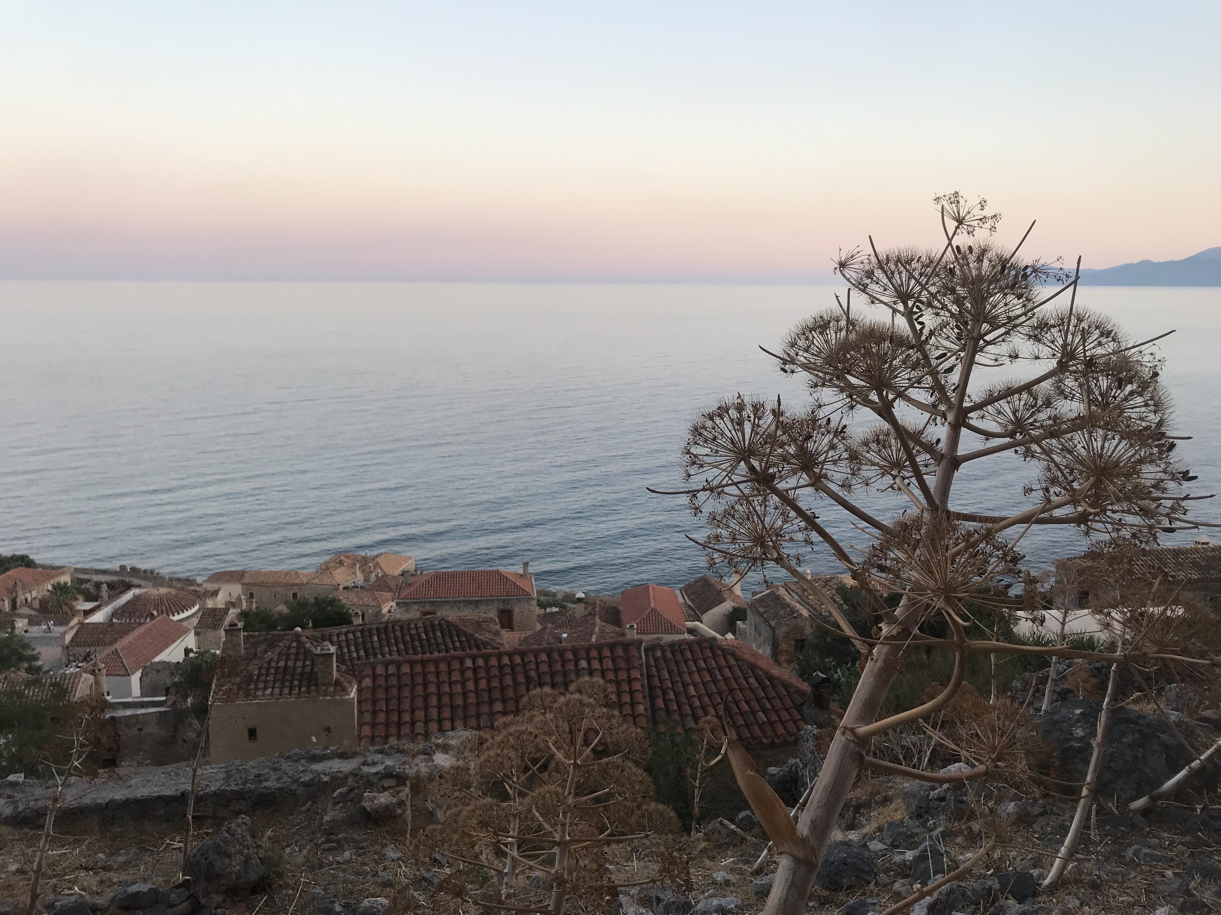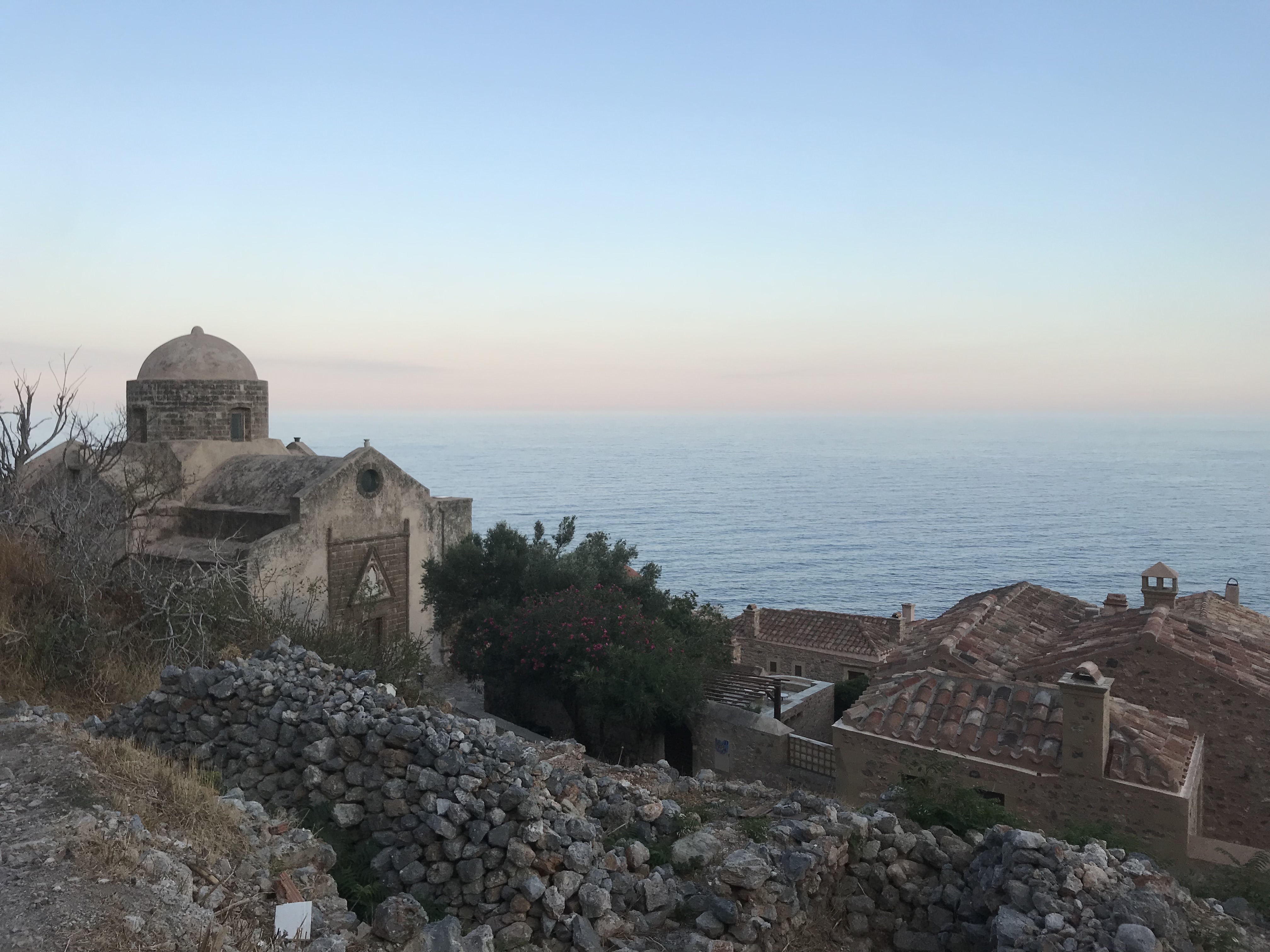 У туристов Монемвасия вызывает понятное желание – после прогулки по крепости посидеть с бокалом вина с видом на море, которое каким-то невиданным образом закат окрашивает в сиреневый зефир. А при свете дня стоит подняться к церкви Святой Софии – за головокружительным видом и порцией обезоруживающей тишины.