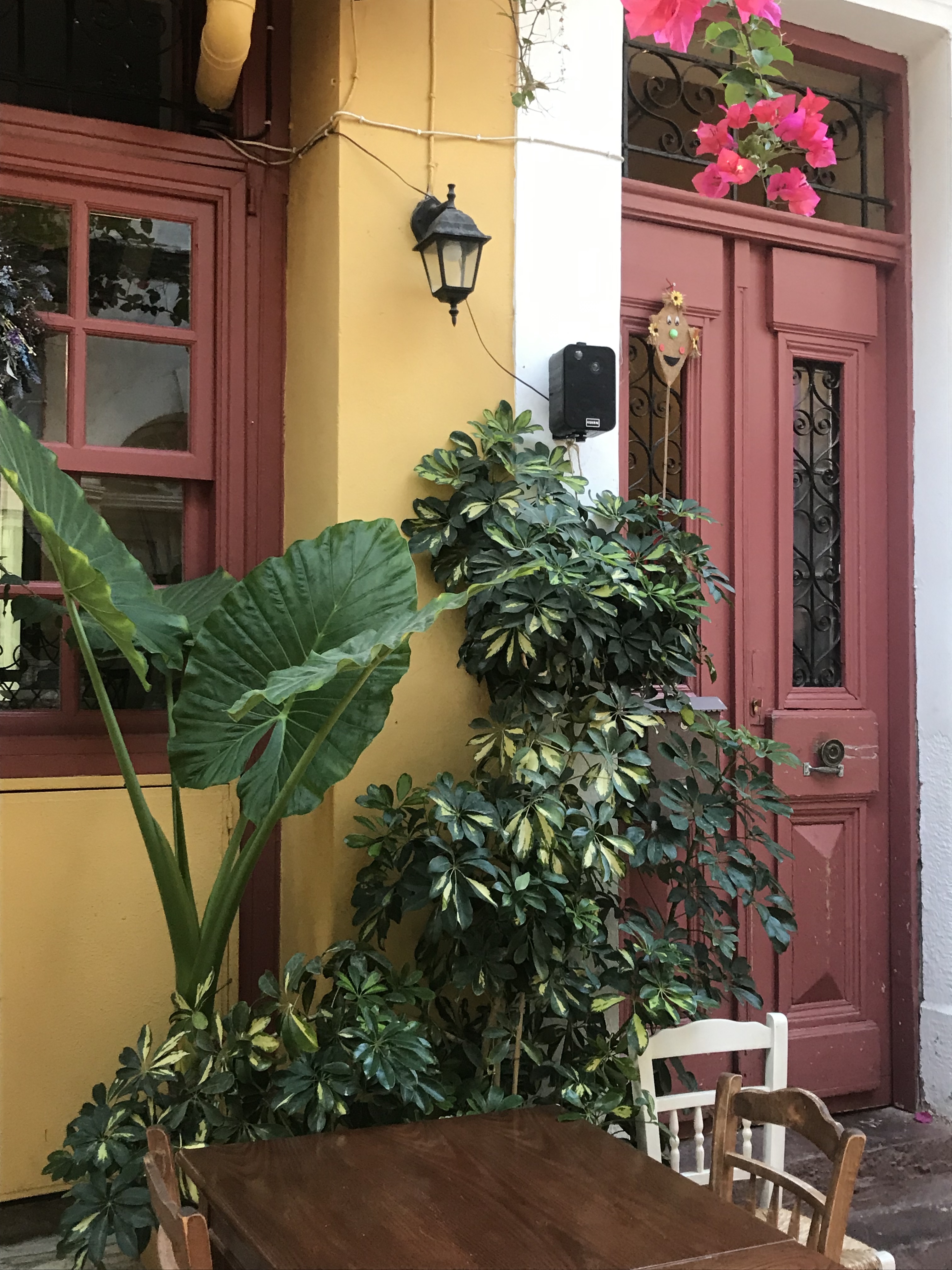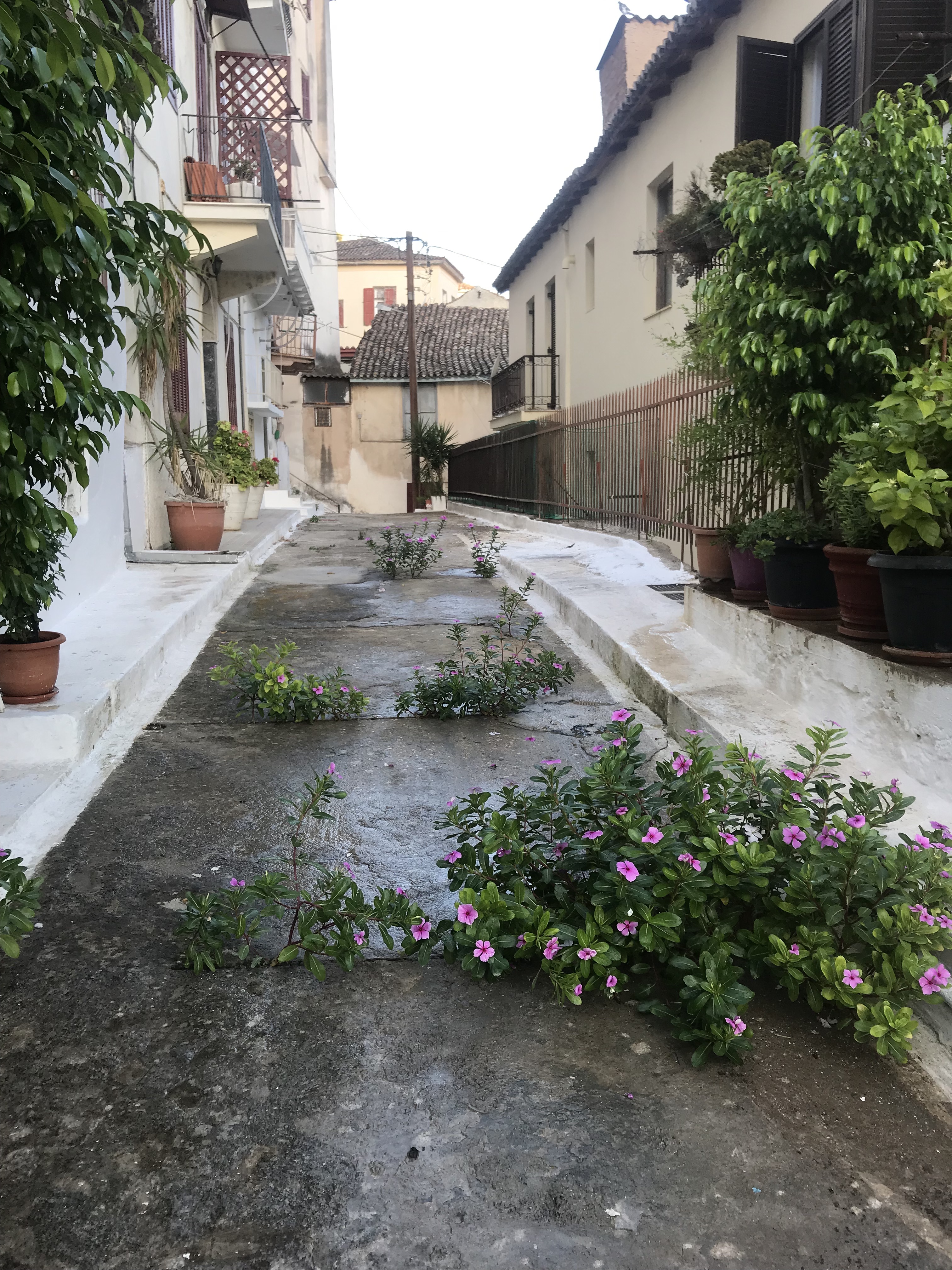 Еще Нафплион – это недостижимый рай для любителей растений. Если у вас в доме есть хотя бы один горшок с чахлым цветком, то вам нужно в Нафплион за вдохновением. Замиокулькасы здесь растут в гигантских горшках в самых темных местах, фикусы распирают огромные бочки, монстеры закрывают листьями фасады домов, а цветы без названия реально находят щель для жизни между бетонными плитами.