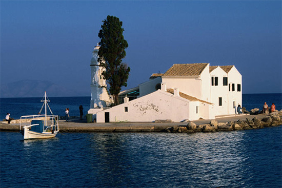 Центр общественной жизни сосредоточен на самой красивой и знаменитой площади под названием Спианада. Отсюда по набережной можно на конном экипаже доехать до венецианского порта или дойти до полуострова Канони. С него открывается вид на одну из визитных карточек острова Корфу – два крошечных очаровательных островка Влахерна и Понтиконисси. Название последнего с греческого переводится как «остров-мышь» (по своим очертаниям издалека он на самом деле очень напоминает мышь). На каждом из этих островов построено по маленькому монастырю. На Влахерну можно перейти по насыпной дамбе, до Понтиконисси курсирует лодка. Вторая дамба переброшена через залив. С нее очень эффектно смотрятся взлетающие из расположенного рядом аэропорта самолеты.