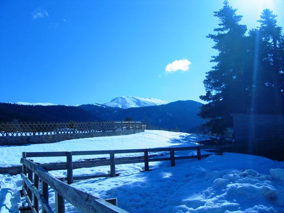 Трасса Эолос 2: И эта трасса находится справа от подъемника Эолос, но идет по более свободному маршруту, с тем, чтобы обойти трудный участок, который упоминался выше. В данном случае речь идет о чисто синей трассе. Ее длина достигает 900 м.
