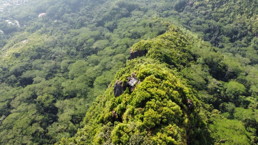 Первая часть маршрута проходит по нескольким ступенькам и ведет в пышный зеленый лес коричных и каучуковых деревьев. Тропа вьется вверх по склону гранитной горы и позволяет вблизи увидеть множество интересных эндемичных и местных видов растений, включая вакоа (Pandanus Multispicatus) и уникальное для Сейшельских островов – кувшинное растение (Nenpenthes Pervillei). С вершины открывается панорамный вид на восточное побережье Маэ и морской национальный парк Святой Анны с его многочисленными островами.