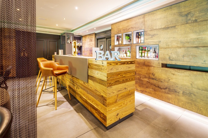 • Фасад отеля выделяется использованием типичных для горной архитектуры материалов: сланца, камня и дерева, а большие окна делают интерьер светлым, современным и уютным. Отель состоит из двух зданий, расположенных на расстоянии всего 80 метров друг от друга.