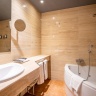 В здании Suite, спальня с двуспальной кроватью (1,8 х 1,9 м), гостиная комната с софой (1,35 x 1,9) и камином, ванная комната с гидромассажной ванной, гостевой туалет с душем, вид на долину Аньос, кофемашина Nespresso;