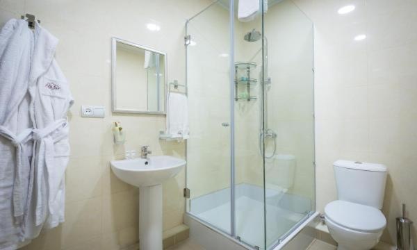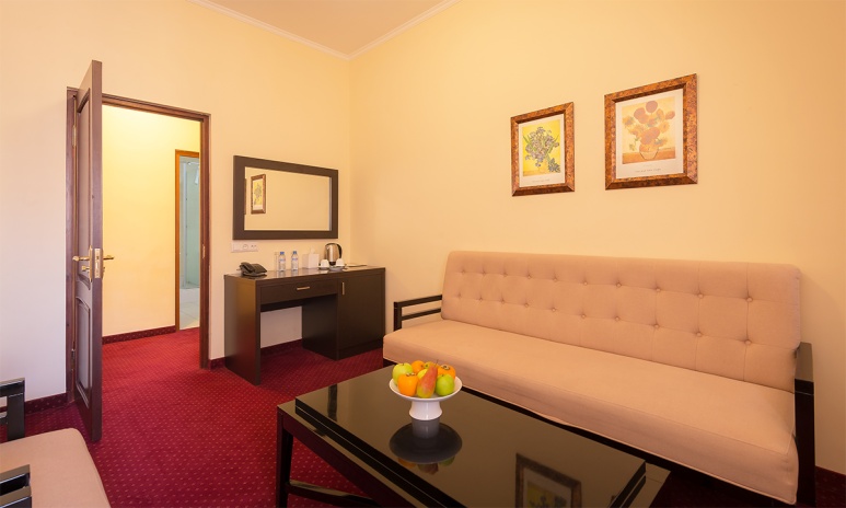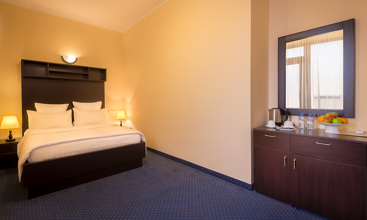 В номерах: фен, халат, тапочки, гипоаллергенный матрас и подушки, кресло, письменный стол, телефон, набор для приготовления чая/кофе, чайник, телевизор со спутниковыми каналами, кондиционер, мини-бар, сейф, зеркало в полный рост, Wi-Fi, бесплатная бутылка воды, банные принадлежности.