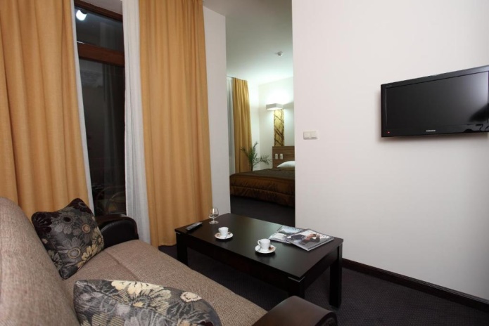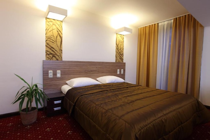 В номерах: мини-бар, сейф, фен, Wi-Fi, телевизор со спутниковыми каналами, холодильник, звукоизоляция, телефон, банные принадлежности.