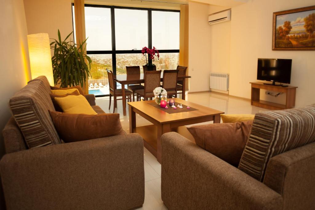 Все апартаменты оформлены в современном стиле, из них открывается панорамный вид на Ереван и гору Арарат.