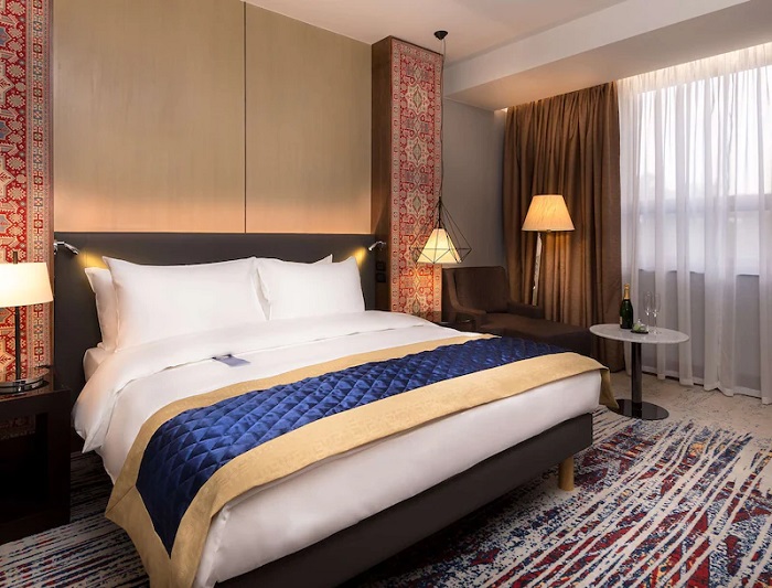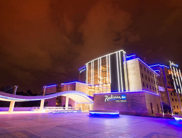 Radisson Blu 5* расположен недалеко от парка Победы и озера Арени, на престижном проспекте Азатутян. Благодаря удачному расположению на возвышенности из его окон открываются прекрасные виды на исторический центр и гору Арарат.