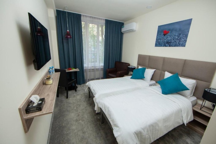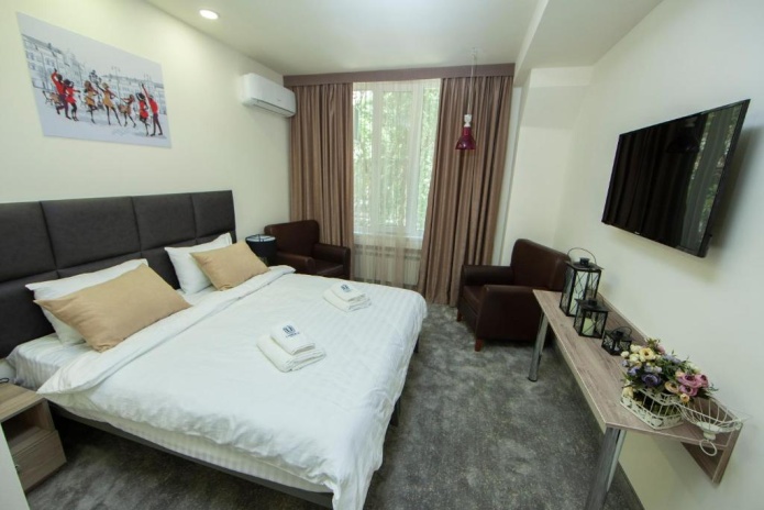 В номерах: ортопедические матрасы, окна со звукоизоляцией, москитная сетка, тапочки, Wi-Fi, телефон, банные принадлежности, телевизор, телефон, сейф, чайник, гостиный уголок, письменный стол.