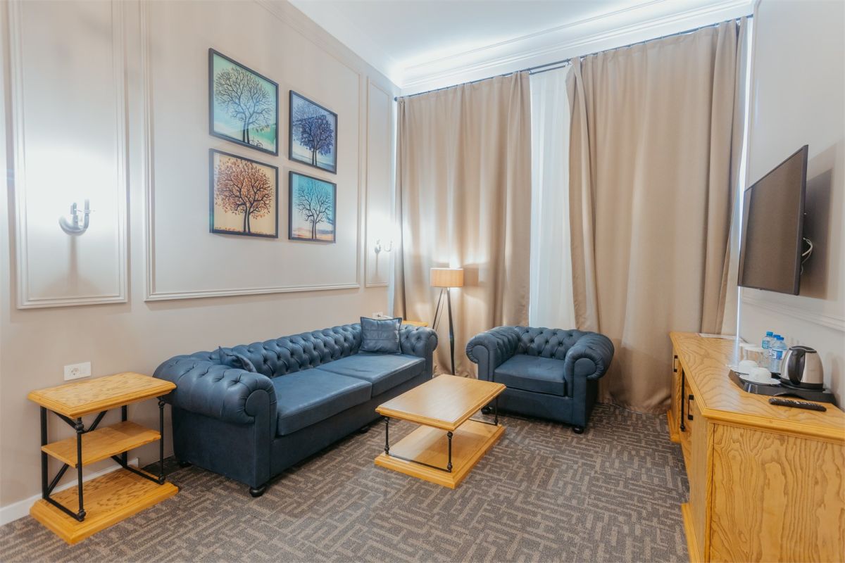 В номерах: Wi-Fi, кондиционер, телевизор со спутниковыми каналами, письменный стол, чайник, мини-бар, сейф, телефон, фен, банные принадлежности, тапочки, набор для приготовления чая/кофе, питьевая бутилированная вода.