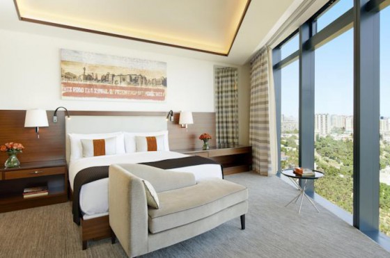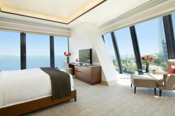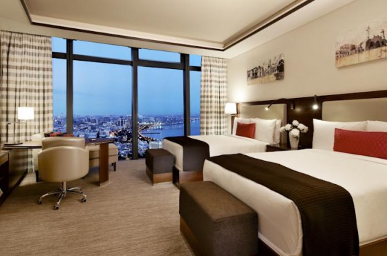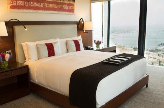 Fairmont Gold - Из этих эксклюзивных номеров, расположенных на 22–26-м этажах, открываются живописные виды на Баку. Они просторны (50 кв. м), отличаются современным дизайном и оборудованы по последнему слову техники. Роскошные ванные комнаты, мультимедийные панели и телевизоры HD — вот далеко не полный перечень удобств этих комфортабельных апартаментов. Гости, выбравшие номера «Fairmont Gold», получают доступ ко всем услугам и удобствам категории Fairmont Gold — от отдельного консьержа и доступа в гостиную «Gold» до бесплатного завтрака и бесплатного доступа к беспроводному высокоскоростному Интернету. Одна большая или две двуспальные кровати. Площадь 50 кв.м.
