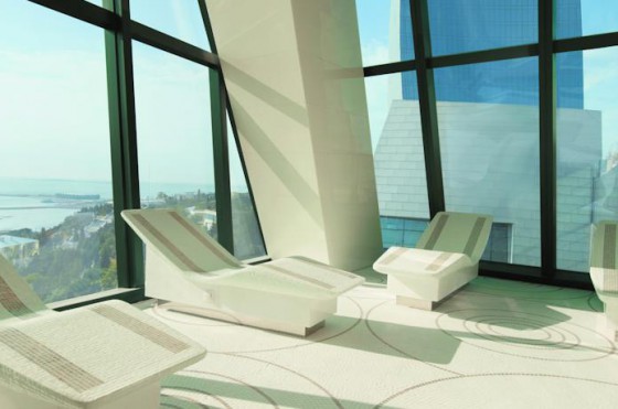 По прибытии гостей номеров «Fairmont Gold» пригласят пройти в эксклюзивную гостиную «Fairmont Gold Lounge», расположенную на 19-м этаже, откуда из огромных окон высотой в два этажа можно полюбоваться захватывающими видами на Каспийское море. В гостиной «Fairmont Gold Lounge» вас проводят к отдельной стойке регистрации.