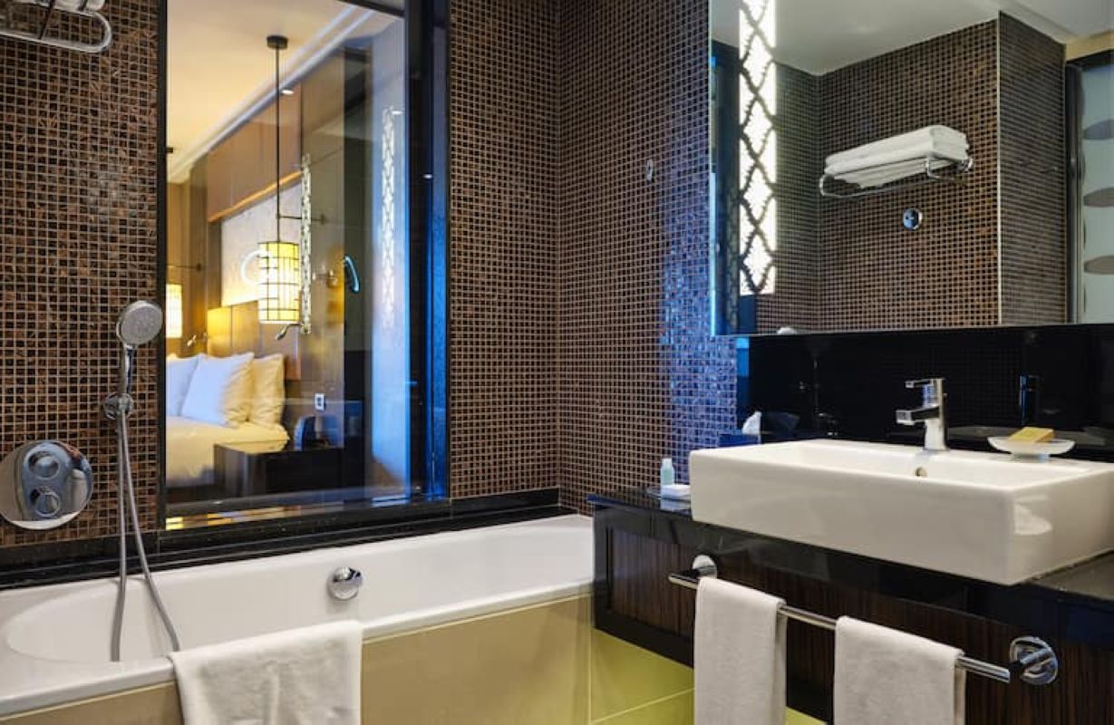 В номерах: телевизор, кондиционер, банные принадлежности, фен, утюг/гладильная доска, телефон, сейф, Wi-Fi, минибар/холодильник, тапочки и халат.