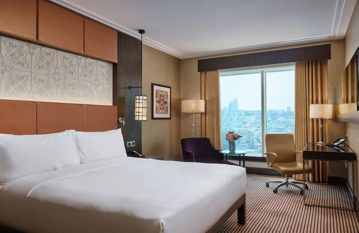 Hilton Baku расположен рядом с набережной и предлагает номера с видом на город и Каспийское море. Всего в нескольких минутах ходьбы от отеля находится исторический памятник, охраняемый ЮНЕСКО - крепость 12 века Ичери Шехер. Вблизи отеля расположены различные бутики, пабы, бары, рестораны, банки, правительственные учреждения и офисы международных компаний. К услугам гостей конференц-залы, спа-центр с крытым бассейном, 2 ресторана и 2 бара.