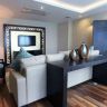 Состоит из спальни, ванной комнаты с джакузи, беде и душевой кабиной, гостиной с рабочей зоной и балкона.