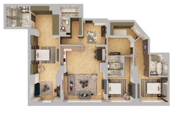 - Apartment 3 Bedrooms (211 м², макс. 7 или 6+2).