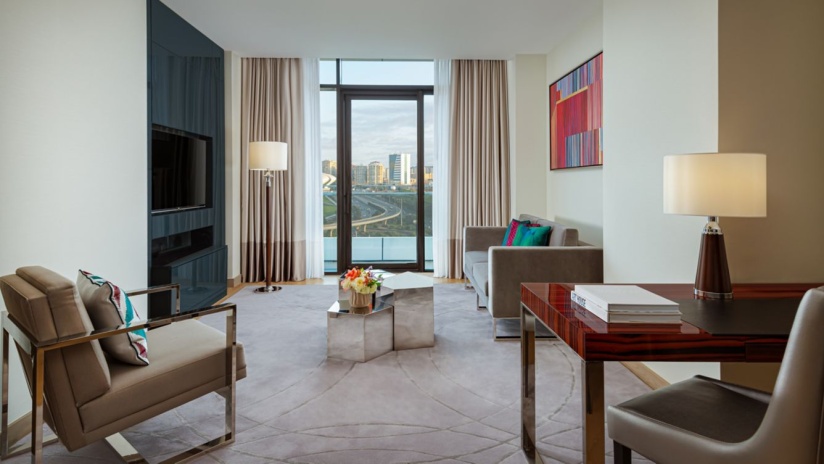 Спальня с двуспальной кроватью king-size, кабинет, отдельная гостиная комната, обеденная зона, ванная комната, тренажёрный зал, сауна, см. план номера. Доступ в клубную гостиную с 06:30 до 23:00: бесплатные угощения (дневные закуски, послеобеденный чай, легкие закуски перед ужином, десерты, поздние вечерние закуски, закуски Grab & Go в течение дня), высокоскоростной Wi-Fi, бесплатные коктейли, бесплатные безалкогольные напитки, бизнес-услуги без дополнительной платы, бесплатная глажка (2 вещи за ночь), расширенное меню a la carte (за дополнительную плату), вечерний бар-сервис;