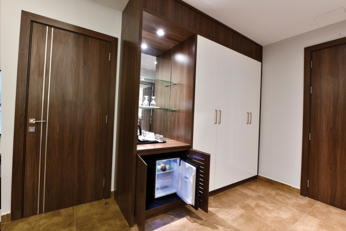 В номерах: мини-холодильник, шкаф, утюг и гладильная доска, сейф, зеркало для макияжа, фен, банные принадлежности, Wi-Fi, набор для приготовления чая/кофе, питьевая бутилированная вода, телевизор, телефон, центральное кондиционирование, письменный стол; на кухне в апартаментах: стиральная машина, холодильник, плита, духовка, микроволновая печь, кухонные принадлежности.