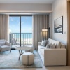 2 спальни (кровать king-size и кровать queen-size), отдельная гостиная комната с диваном, обеденным столом и полностью оборудованной кухней (столовые приборы, плита, посудомоечная машина, микроволновая печь, холодильник), 2 ванные комнаты с душем, балкон, вид на море;