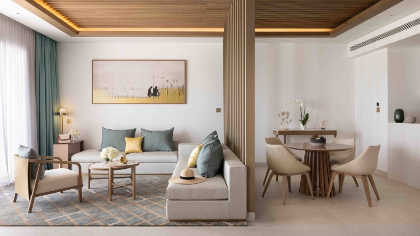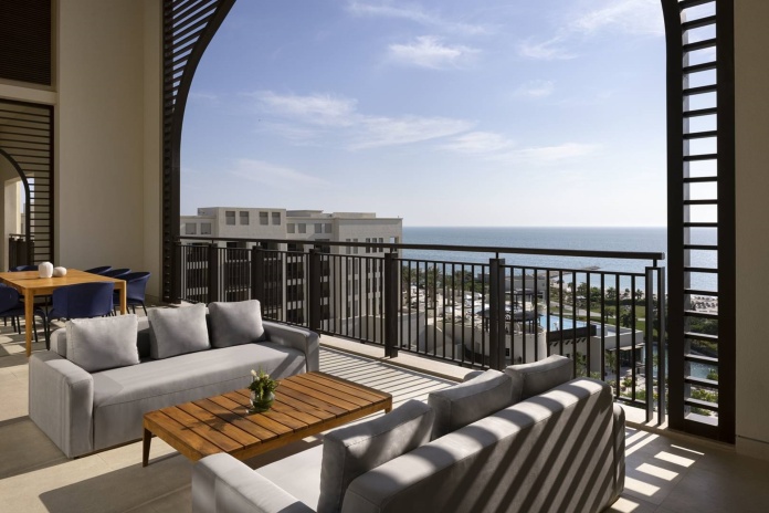 Номера расположены у пляжа, спальня с двуспальной кроватью king-size и гостиной зоной, отдельная гостиная комната с 2 диванами и обеденным столом на 6 человек, ванная комната, просторный балкон или терраса, вид на океан, ранняя регистрация заезда и поздняя регистрация отъезда при наличии возможности, а также бесплатный завтрак «шведский стол»;