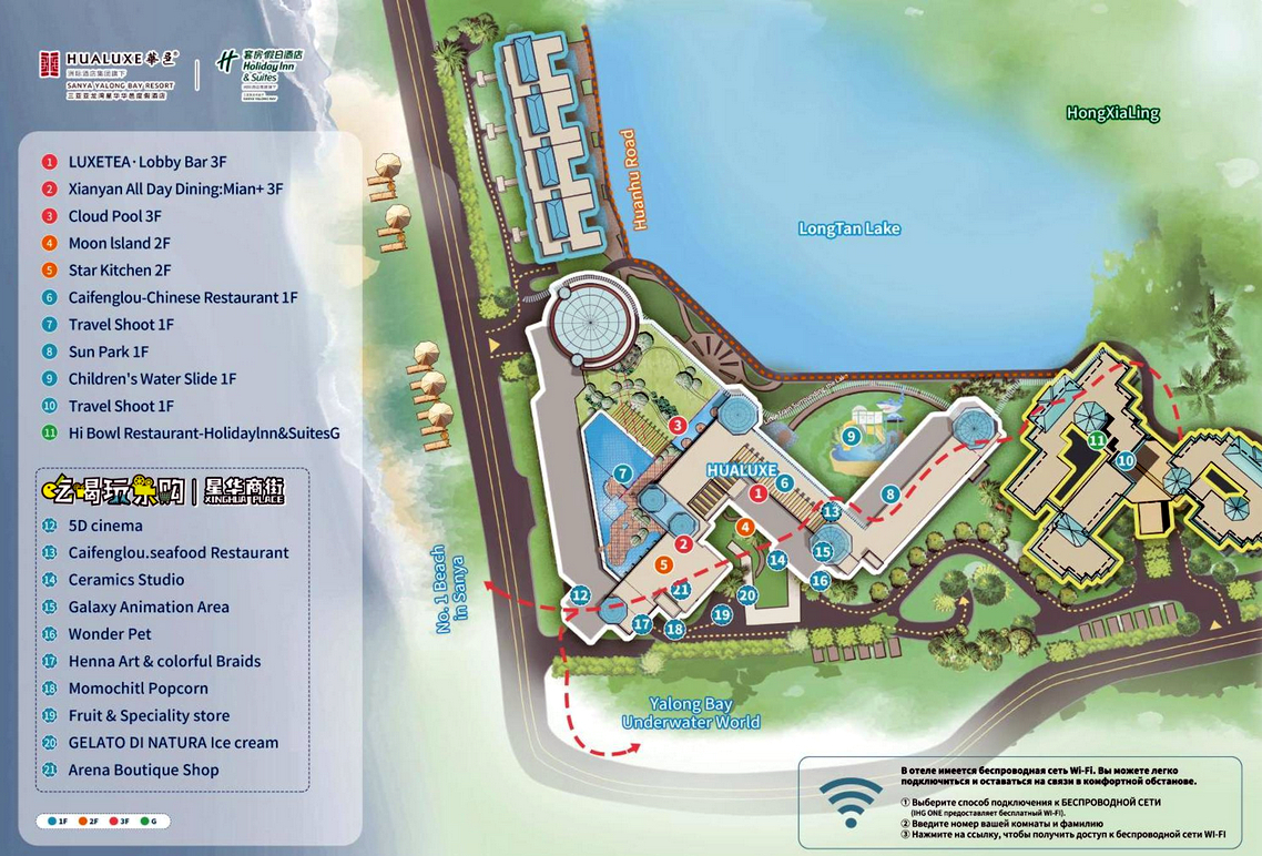 Гора и парк Лу Хуэй Тоу, а также City Center Mall и China Duty-Free Shop находятся в шаговой доступности, что делает курорт удобной отправной точкой для отдыха и шопинга.
