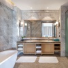 Угловой сьют открытой планировки расположен на 19-22 этажах, спальня с двуспальной кроватью king-size, отдельная ванная комната с ванной, двойной раковиной, душевой кабиной за стеклянной матовой перегородкой, просторная гостевая зона с диваном и обеденным столом, большой меблированный угловой балкон, панорамный вид на море.