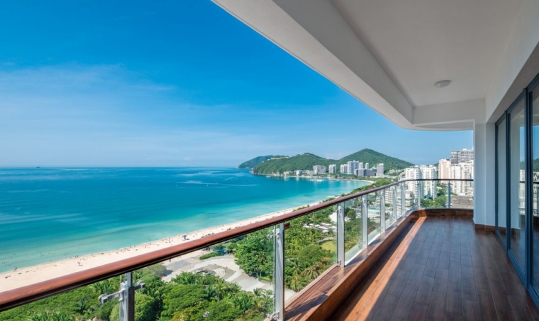 Номер расположен на 6-22 этажах, двуспальная кровать king-size или 2 односпальные кровати, зона ванной комнаты отделена ширмой, душевая кабина со стеклянной матовой перегородкой, гостевая зона, меблированный балкон, вид на море;