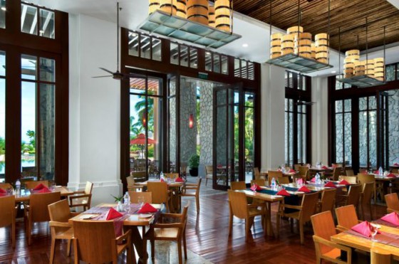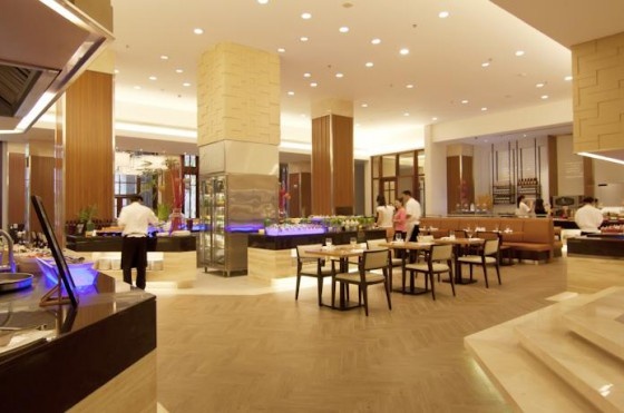 Согласно восточной философии и китайским традициям, вселенная состоит из пяти элементов: металла, дерева, воды, огня и земли. В каждом из ресторанов отеля отражается один из элементов — в стиле, декоре и атмосфере. «Дерево» Teak Lounge — элегантная мебель из тикового дерева, классический декор. Бар находится в просторном зале вестибюля. Бар, разделенны на три части: часть, где выставлены сорта чая со всего Китая, кофейный уголок и кондитерский уголок. Здесь Вы можете позавтракать, пообедать или поужинать или просто перекусить в любое время; «Огонь» The Big Kitchen — основная тема этого ресторана — пламя, открытый огонь. Здесь шеф-повара готовят разнообразные блюда со всего мира в современной открытой кухне, прямо у Вас на глазах!На обед подается все, от лапши и спагетти до сэндвичей, суши и барбекю. Ужин в этом ресторане подарит Вам замечательную возможность отведать блюда, собранные в одном месте с разных уголков мира творческими усилиями наших поваров. «Земля» China Harvest — лучшие дары земли. Кухни восьми китайских кантонов. Лучшие китайские деликатесы, современный интерьер, открытые террасы. «Вода» IZE — основная тема этого ресторана — текущая, бегущая или струящаяся вниз каскадом вода. Этот французский ресторан расположен среди садов. Этот фирменный ресторан предлагает элитные морепродукты и вина высшего качества. А так же с недавнего времени ресторан предлагает Seafood Hot Pot "Китайский самовар из морепродуктов". «Металл» Bar D ’ Or —Вполне современное место, где можно промочить горло. Bar D ’ or представляет блеск, роскошь и экстравагантность в международном стиле. Загляните сюда ближе к вечеру, чтобы выпить или перекусить перед ужином, или еще позже, чтобы послушать музыку и попробоват; фирменные напитки. Специальные вечерние трансляции на большом экране освещают основные спортивные события. "Chill" – Расположен на пляже, с видом на море. Здесь вы можете отведать наши свежайшие закуски и прохладительные напитки, во время жаркого дня и ощутить волну теплого бриза. Также для ваше удобства выбор; салатов, сандвичей,мороженого, шоколада и многих других. Во всех ресторанах предоставляется меню на русском языке.
